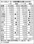 タイ:自動車 販売 月次データ 25年11月(商用車セグメント別など)