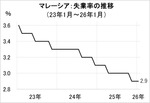 マレーシア:1月の失業率2.9%、11年ぶり低水準を維持