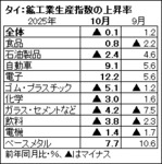 タイ:10月の工業生産0.1%減、自動車・電子は伸び加速