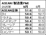 アセアン:9月の東南ア製造業PMI、14カ月ぶり高水準に