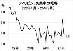 フィリピン:9月の失業率3.8%、2カ月連続で低下
