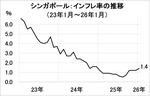 シンガポール:1月の物価上昇1.4%、4カ月ぶり加速