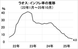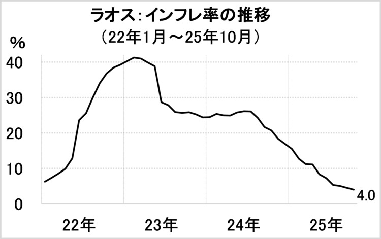 アセアン:ラオスの10月インフレ率4%、16カ月連続で減速