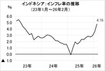 インドネシア:2月のインフレ率4.76%、3年ぶり高水準