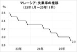 マレーシア:11月の失業率2.9%、11年ぶり低水準