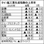 タイ:8月の工業生産4%減、自動車など落ち込む