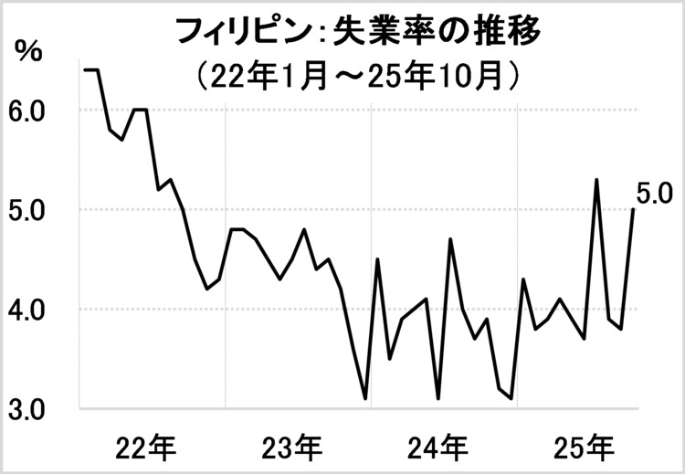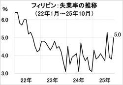 フィリピン:10月の失業率5%、3カ月ぶり上昇