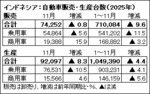 インドネシア:11月の新車販売1%減、7カ月連続マイナス