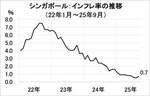 シンガポール:9月の物価上昇0.7%、10カ月ぶり伸び加速