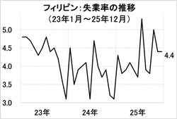 フィリピン:12月の失業率4.4%、不完全就業率は過去最低に