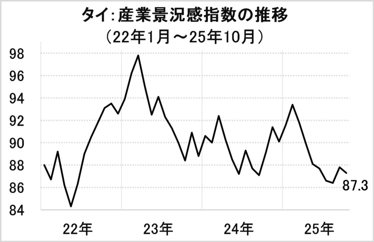 タイ:10月の産業景況感指数、2カ月ぶり低下