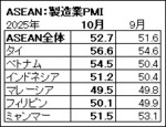 アセアン:10月の東南ア製造業PMI、2年半ぶり高水準に