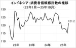 インドネシア:10月の消費者信頼感121.2、3カ月ぶり上昇